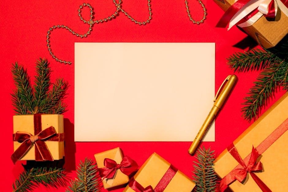 Sometimes‚ a tangible copy of your Christmas list is preferred‚ especially for family members who aren’t digitally inclined. Printing your PDF allows for a personal touch and ensures everyone can easily view your wishes‚ regardless of their tech savviness. Before printing‚ review your PDF one last time to confirm accuracy and formatting. Select “Print” from the file menu and adjust settings like paper size‚ orientation (portrait or landscape)‚ and number of copies.